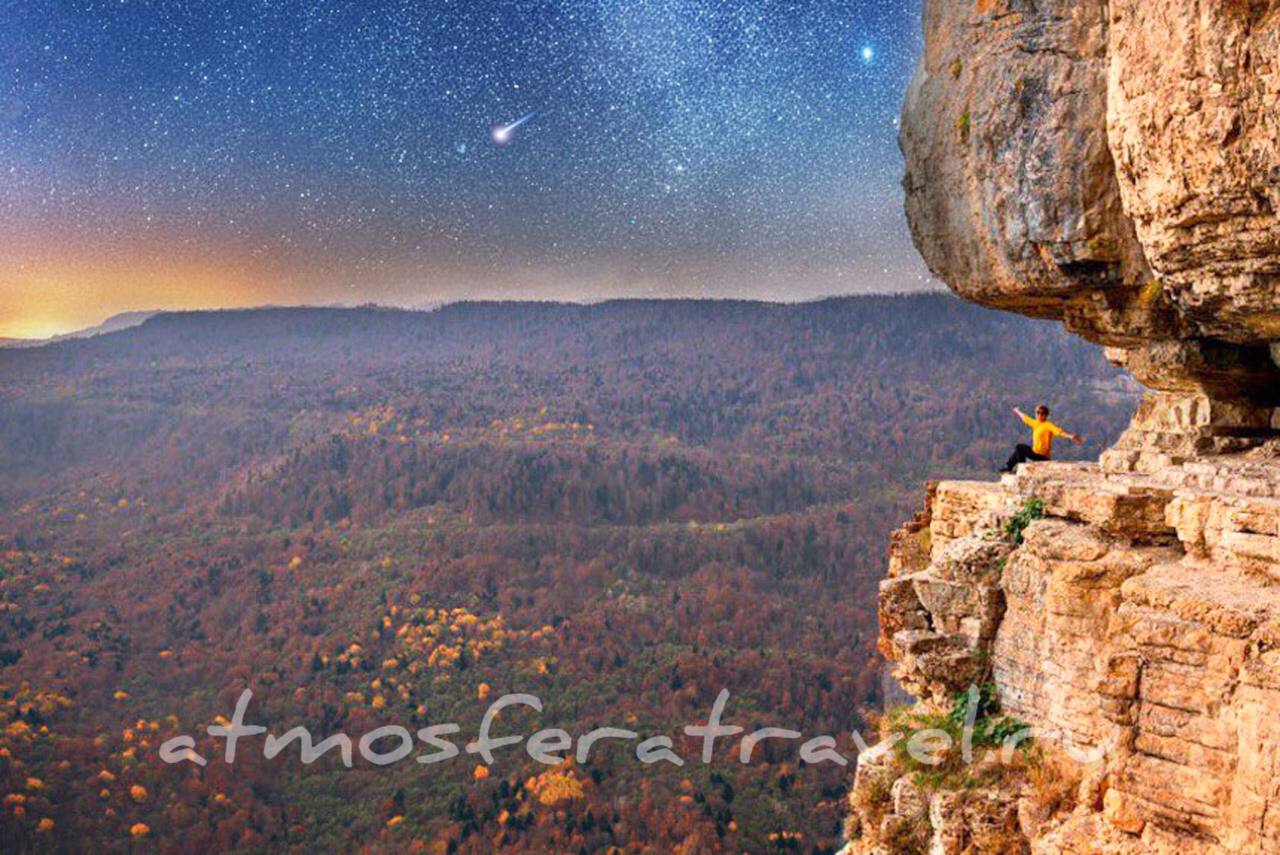 Незабываемый астро-туризм с обсерваторией и телескопами, направленными в звёздное небо! Едем в увлекательное трёхдневное путешествие по космическому Мезмаю и Гуамке. Мы пройдём горной тропой по осеннему лесу и поднимемся на Орлиные полки –супер-атмосферное место, с потрясающими панорамами на плато Лаго-Наки и хребет Азиш-Тау, на уютный горный посёлок Мезмай, затерявшийся в глубоком ущелье. Увидим тайные гроты, пещеры и водопады,. Совершим телепорт во времени и пространстве — переход по старой узкоколейке из Мезмая в Гуамку, прокатимся на экскурсионном паровозике по живописному Гуамскому ущелью с видами на неукротимый Курджипс. Закончим наше путешествие полным релаксом в минеральных термальных источниках.